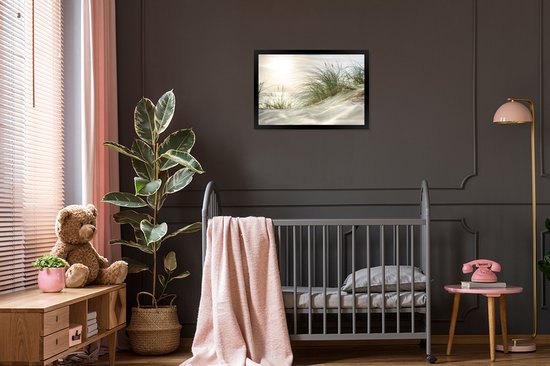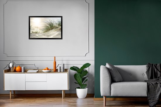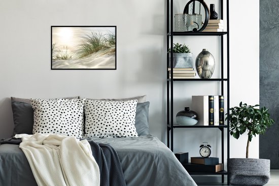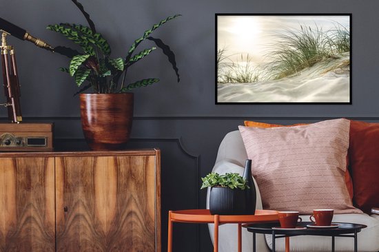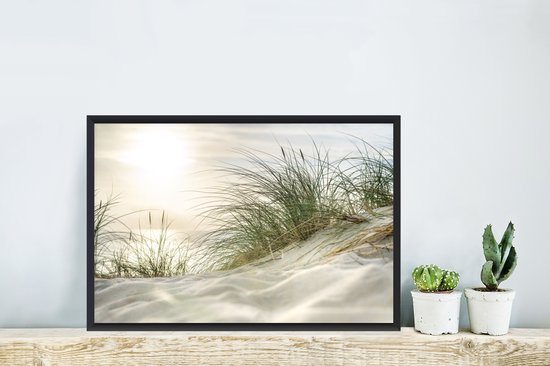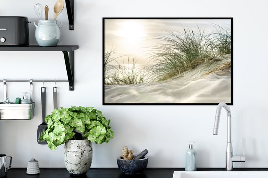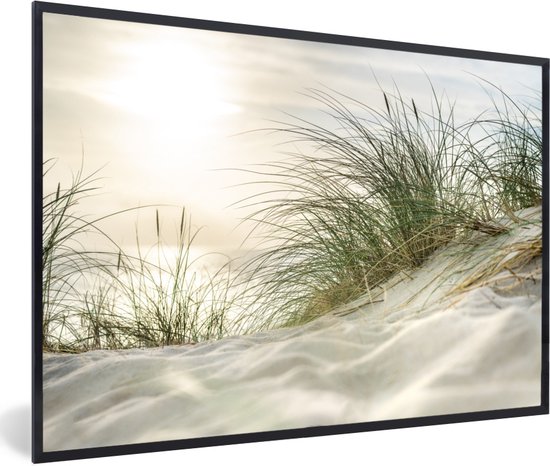 Image encadrée - Dunes avec herbe de plage sous le soleil du parc national allemand Schleswig-Holsteinisches Wattenmeer cadre photo 60x40 cm - Affiche encadrée (Décoration murale salon / chambre)