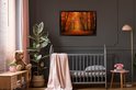 Image encadrée - Forêt d'automne de conte de fées avec cadre photo couleurs rouges noir sans passe-partout 90x60 cm - Affiche encadrée (Décoration murale salon / chambre)