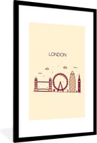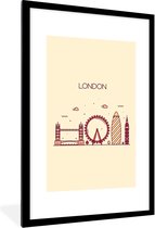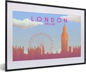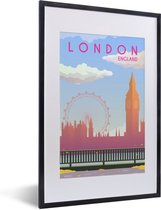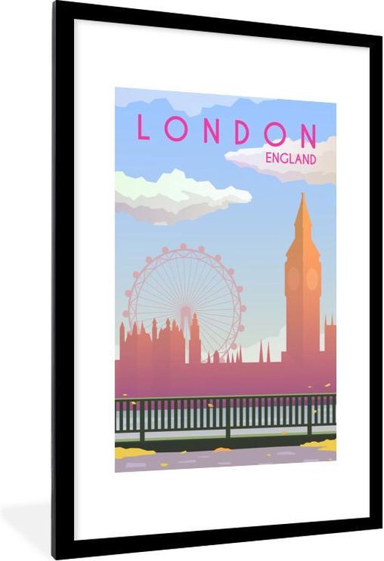 Image encadrée - Illustration de la ville de Londres en Angleterre cadre photo noir avec passe partout blanc 80x120 80x120 cm - Affiche encadrée (Décoration murale salon / chambre)
