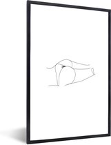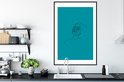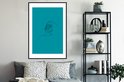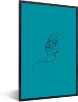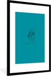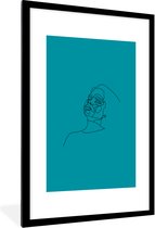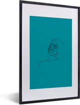 Image Line- Illustration d'art en ligne d'un visage de femme sur fond bleu cadre photo noir avec passe partout blanc 80x120 80x120 cm - Affiche encadrée (Décoration murale salon / chambre)