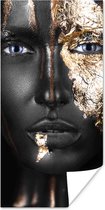 Image unique d'une femme au maquillage doré. Le portrait est facile à combiner grâce aux couleurs noir et or 20x30 cm - petit