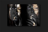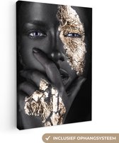 Image unique d'une femme au maquillage doré.Le portrait est facile à combiner grâce aux couleurs noir et or 40x60 cm
