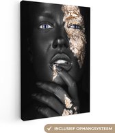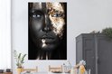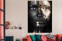 Image unique d'une femme maquillée aux nuances dorées Le portrait est facile à combiner grâce aux couleurs noir et or 120x180 cm XXL / Groot format!