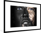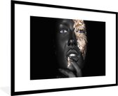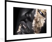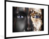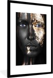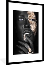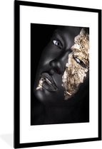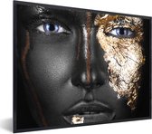 Image unique d'une femme maquillée aux nuances dorées. Le portrait est facile à combiner grâce aux couleurs noir et or 60x90 cm