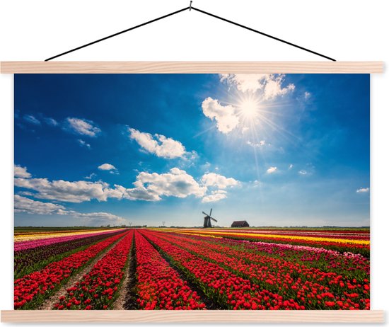 Impressionnant champ de tulipes aux Nederland affiche textielposter lattes vierges 150x100 cm - Tirage photo sur plaque scolaire (décoration murale salon / chambre)