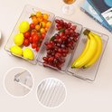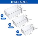 Inovra ® Description : Découvrez la polyvalence de cet ensemble de rangement de 9 pièces, parfait pour garder votre cuisine et votre salle de bain bien rangées. Cet ensemble contient trois tailles différentes de boîtes de rangement empilables, mesurant 26 x 16 x 8 cm, 25,5 x 15 x 7 cm et 24,5 x 14 x 6 cm. Fabriqués à partir d'un matériau PET de qualité alimentaire, sans BPA, ces organisateurs présentent une conception transparente pour une visualisation facile du contenu. La conception intelligente comprend des poignées intégrées pour un retrait facile, une base avec grille de drainage pour éviter l'accumulation d'humidité et des trous de ventilation sur le dessus pour garder les produits frais plus longtemps. Ces organisateurs conviennent non seulement à une utilisation dans les réfrigérateurs et les congélateurs, mais sont également idéaux pour les salles de bains, les garde-manger, les armoires et les zones de travail. Ils aident efficacement à créer un espace organisé et sans encombrement. Pour l'entretien, les organisateurs peuvent être nettoyés avec de l'eau tiède et du savon, mais évitez d'utiliser le lave-vaisselle ou des températures élevées pour prolonger leur durée de vie. Choisissez cette solution pratique pour garder votre maison bien rangée et organisée.