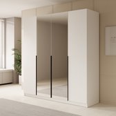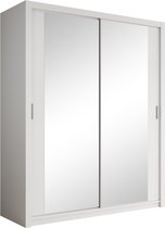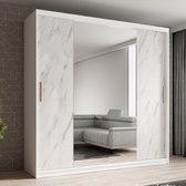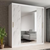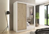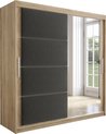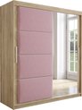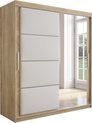 InspireMe - Armoire à 2 portes coulissantes, Style moderne, Armoire avec étagères, Façades d'armoires avec miroir et panneaux rembourrés (LxHxP): 180x200x62 - TAPILA 180 - Chêne Sonoma + Wit