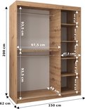 InspireMe - Armoire à 2 portes coulissantes, Style moderne, Une armoire avec des étagères et un miroir (LxHxP): 150x200x62 - VENEZIA I 150 Wit Mat