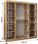 InspireMe - Armoire avec 2 portes coulissantes, Style moderne, Armoire avec étagères (LxHxP): 180x200x62 - TORM 180 Wit Mat avec 4 tiroirs