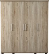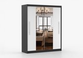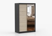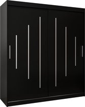 InspireMe - Armoire avec 2 portes coulissantes, Style moderne, Armoire avec étagères (LxHxP): 200x200x62 - TORM 200 Zwart Mat avec 4 tiroirs