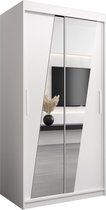 InspireMe - Armoire avec 2 portes coulissantes, Style moderne, Une armoire avec des étagères et un miroir (LxHxP) : 100x200x62 - MALTESE I 100 Wit Mat