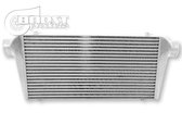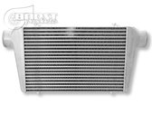 Intercooler universel de Competition 450x300x76mm - 63mm Intercooler Universal en aluminium de course modèle 2015 avec noyau à ailettes et Core de Competition La nouvelle série Intercooler 2015 vous offre un noyau de refroidissement de nouvelle génération avec le meilleur rapport qualité-prix. Le nouveau noyau de compétition convainc par son traitement précis et le meilleur résultat de refroidissement avec une contre-pression extrêmement faible. Là où les anciens noyaux Bar-and-Plate ont déjà été remplacés par des noyaux Fin-and-Tube, nos nouveaux noyaux Competition remplacent les noyaux Fin-and-Tube habituels. Les noyaux de refroidissement très légers disposent de turbulateurs internes pour un effet de refroidissement optimal et d'une structure lamellaire pour une utilisation parfaite du flux d'air. Un excellent équilibre en termes d'effet rafraîchissant, de poids, de robustesse et de prix. Les réservoirs en fonte d'aluminium sont fabriqués en fonte d'aluminium de 3 mm d'épaisseur et peuvent résister aux pressions de remplissage les plus élevées. Les modèles 2015 ont un boîtier mat au lieu d'un boîtier poli. Tous les refroidisseurs intermédiaires ont été testés pour résister à une pression de 5 bars.