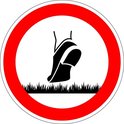 Panneau rond avec pictogramme interdit de marcher sur l'herbe