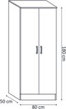Armoire ' Amelie' 2 Portes Wit (180x80x54cm) Dimensions : HH 180 x BL 80 x PP 54 cm Colis : 2 Volume : 0,136 m³ Poids : 51,50 kg