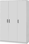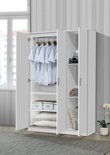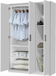 Armoire Lucas avec 3 portes, 1 tringle et 4 étagères. En aggloméré, blanc.