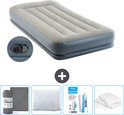 Intex Airbed - 1-Person - 99 x 191x 30 cm - Grijs - Avec pompe intégrée, Hoeslaken Anthracite, Oreiller, Molton 2 en 1 Taies d'oreiller et Kit de réparation