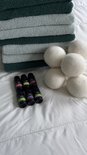 Produit fantastique. Tellement agréable que c'est respectueux de l'environnement et que ça marche vraiment bien. Le linge devient agréable et aéré et, si vous le souhaitez, dégage un parfum très agréable. J'avais peur que beaucoup de poils de chien s'y collent, mais ce n'est pas du tout le cas. Les balles peuvent être lavées en machine si nécessaire. Vous pouvez également mettre au sèche-linge les vêtements qui n'ont pas besoin d'être lavés mais qui ont juste besoin d'être rafraîchis : mettez quelques gouttes sur les boules et faites tourner. C'est une superbe invention ! Aussi agréable à donner en cadeau.