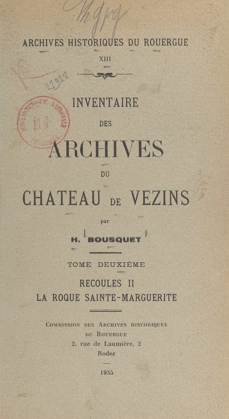 Inventaire des archives du château de Vezins (2). Recoules II. La Rocque Sainte-Marguerite