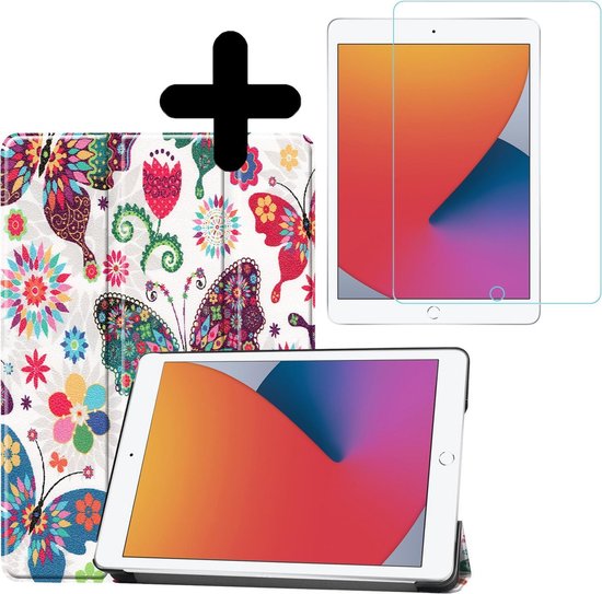 Étui adapté pour iPad 10.2 2020 Cover Book Case Case Luxe à trois volets avec protecteur d'écran - Étui adapté pour iPad 8 Case Bookcase - Papillons
