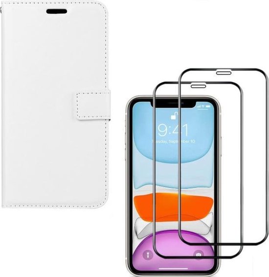 iPhone 11 - Bookcase white - étui portefeuille + 2X Full Cover Tempered Glass écran en verre trempé