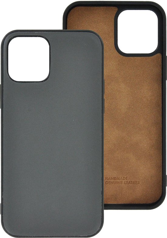 iPhone 12 cas - iPhone 12 étui en cuir véritable couverture arrière P Case Grijs