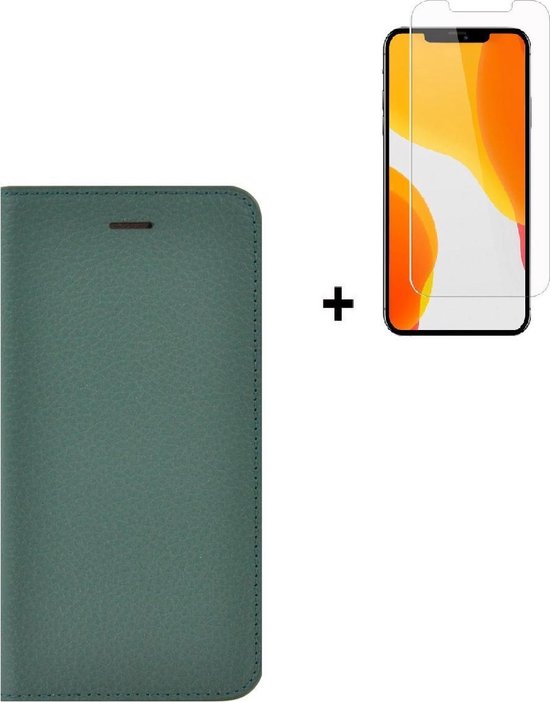 iPhone 12 - Protecteur d'écran iPhone 12 - Bookcase portefeuille étui portefeuille Ultra fin en cuir véritable Vert + Protecteur d'écran