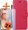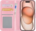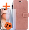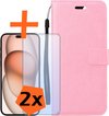 iPhone 15 Pro Max Cover Bookcase Flipcase Book Cover avec 2x protecteur d'écran - iPhone 15 Pro Max Case Book Case - Rose clair