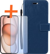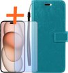 Écrit pour: iPhone 15 Cover Bookcase Flipcase Book Cover avec protecteur d'écran - iPhone 15 Case Book Case - Turquoise