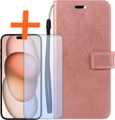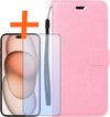 iPhone 15 Pro Max Cover Bookcase Flipcase Book Cover avec protecteur d'écran - iPhone 15 Pro Max Case Book Case - Rose clair