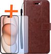 Écrit pour: iPhone 15 Cover Bookcase Flipcase Book Cover avec protecteur d'écran - iPhone 15 Case Book Case - Marron