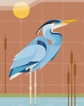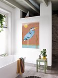 IXXI Héron bleu, Elke Uijtewaal - 80 x 100 cm - Système d'accrochage inclus - Grande décoration murale et affiche - Coloré, Illustrations, Design graphique