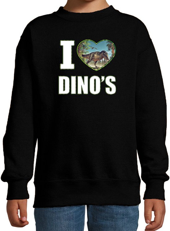 J'aime le pull dino's avec animaux photo d'un dino noir pour enfant - cadeau pull T- Rex amoureux des dinosaures - vêtements pour enfants / vêtements 14-15 ans (170/176)