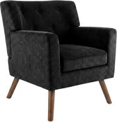 Fauteuil CLP Kioni - avec accoudoirs - adulte - relax - country - pieds en bois - velours côtelé - noir