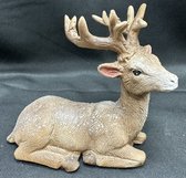 Figurine de Noël Renne couché - polyresin - hauteur 8 x 11 x 10 cm - marron + paillettes - Décoration de Noël - Accessoires de maison - Petites figurines de Noël décoratives