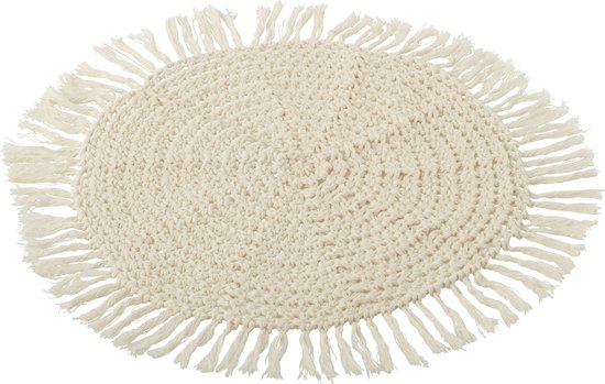 J-Line set de table Round Woven + Fringes - polyester - beige