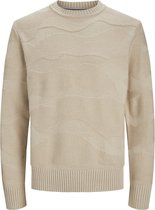 JACK & JONES Josh knit ras du cou slim fit - pull homme en coton mélangé avec col rond - beige - Taille : XXL