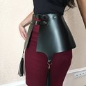 Êtes-vous à la recherche d'un harnais de bondage magnifiquement conçu pour vous-même ou pour votre partenaire féminin ? Ce harnais BDSM est conçu comme une jupe et contient deux pendentifs avec des brins noirs qui tombent le long du haut des jambes du porteur. Une jupe de bondage est encore un phénomène relativement méconnu, mais c'est une excellente alternative aux harnais de bondage avec une ceinture de hanches. La jupe harnais est faite de cuir véritable et finie avec des clous et des anneaux en métal. Le Cuir est le matériau le plus professionnel utilisé lors des activités BDSM. Il est robuste et durable et peut durer toute une vie si le matériau est correctement entretenu. La jupe BDSM en cuir est réglable au niveau des bretelles et convient donc à presque toutes les femmes.