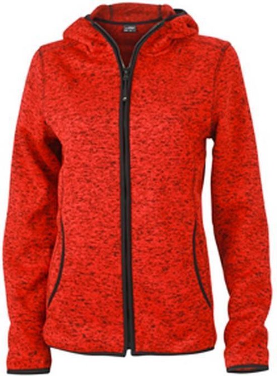 James and Nicholson Ladies / Ladies Knitted Fleece Hoodie (Rouge gemeland / noir)