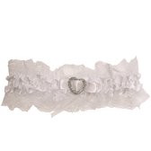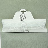 Le bracelet est en dentelle élastique blanche avec un strass.