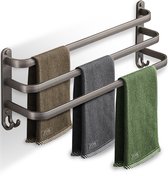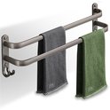 JDK - Porte-serviettes 2 pièces - Porte-serviettes de bain autocollant Salle de bain - Support mural 60 cm - Grijs