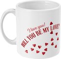 Je t'aime! VEUX-TU ÊTRE MON AMOUR ? est une tasse en céramique blanche avec un texte rouge et des coeurs rouges Cadeau romantique Cadeau d'amour Cadeau de Saint-Valentin Déclaration d'amour - Rouge