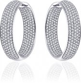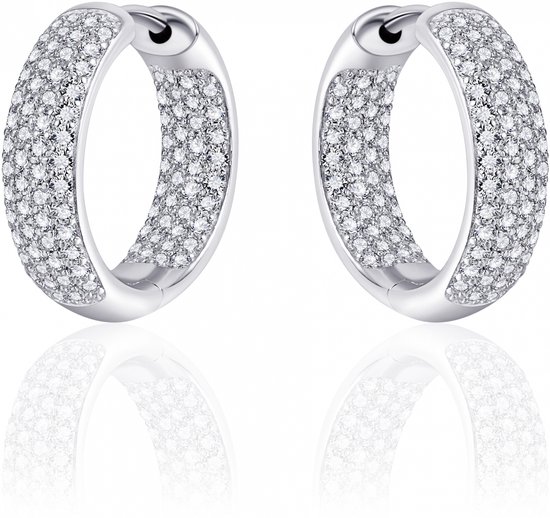 Boucles d'oreilles en argent sterling plaquées rhodium. Les boucles d'oreilles sont pavées à l'intérieur et à l'extérieur de zircones blancs taillés en brillant. Bijoux de Jewels Inc. sont fournis dans un coffret cadeau.