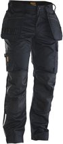 Pantalon de peintre avec des sections renforcées à l'entrejambe en Cordura® stretch pour plus de flexibilité. Fabriqué à partir d'un noyau en coton/polyester filé à l' Core, un tissu avec la résistance du polyester et la douceur du coton, offrant une excellente durabilité et un confort. Le pantalon de peintre a de grandes poches étui et la poche intérieure est doublée de polyamide FA™ hydrofuge. Les pantalons des grandes tailles ont des passants de ceinture supplémentaires. De plus, le pantalon de peintre a une boucle pour marteau, une poche pour un couteau et un mètre pliant et des compartiments pratiques pour les outils de peinture. La poche de jambe en biais est dotée d'une fermeture éclair, d'une poche pour téléphone, d'une poche pour carte d'identité et d'une poche supplémentaire. Il y a un cordon de serrage au bas de la jambe. Certifié EN14404:2004+A1:2010 Type 2 Niveau 1 avec les genouillères Jobman 9943, 9944 et 9945.
