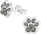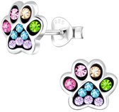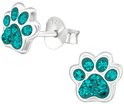 Joie|S - Boucles d'oreilles argent chat chien patte animal - 7 x 6 mm - cristal bleu turquoise - empreinte patte - boucles d'oreilles enfant
