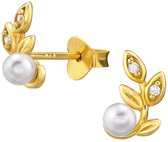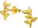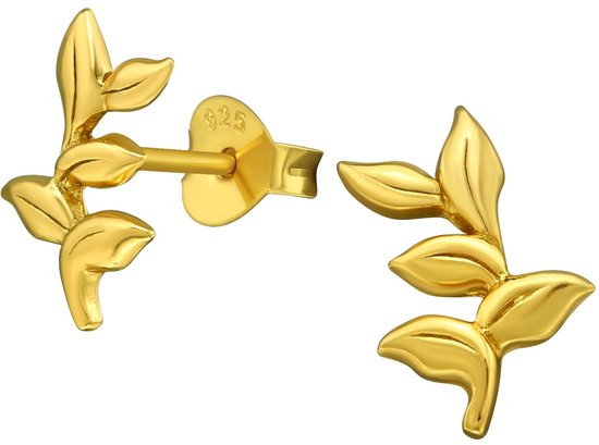 Joie|S - Boucles d'oreilles feuille d'argent - 4,5 x 9,3 mm - boucles d'oreilles clous feuille - placage or 14 carats
