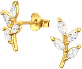 CS Joy - Boucles d'oreilles brindille avec feuilles - Acier chirurgical - 4 x 12 mm - plaqué or ip/pvd
