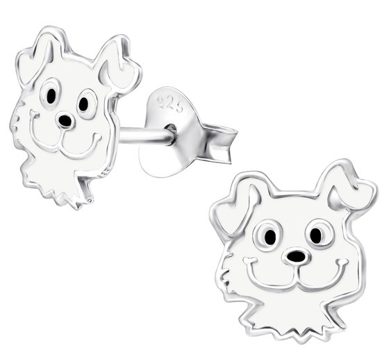 Joie|S - Boucles d'oreilles chien en argent - 8 x 9 mm - blanc - boucles d'oreilles enfant
