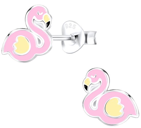 Joie|S - Boucles d'oreilles flamant rose argent - 8 x 7 mm - rose jaune - boucles d'oreilles enfant - oiseau