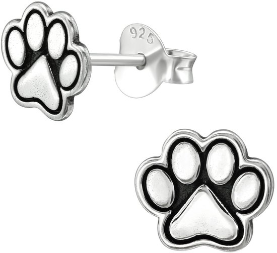 Joie|S - Boucles d'oreilles patte d'animal chat chien argent - 8 x 9 mm - Massif - Oxydé - Empreinte de patte