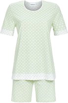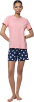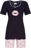 Un short bleu marine foncé de Ringella de la collection Lingerie . La chemise shortama a des manches courtes et une encolure ronde. Les extrémités des manches et le col sont ornés d'un ourlet rose. Le cou est également décoré d’un joli nœud rose. Le devant de la chemise présente un imprimé de baiser rose. Le bas de la chemise courte est orné d'un magnifique ourlet roulé. Le short présente un joli motif de coeurs bleu marine foncé sur fond rose. Spécifications du produit : Composition du tissu : 50 % coton, 50 % modal Longueur de la chemise : 68 cm Merk et collection : Ringella Lingerie Saison : Printemps/été Le modal est un textile biologique fabriqué à partir de cellulose de hêtre. Il est environ 50% plus hygroscopique que le coton.